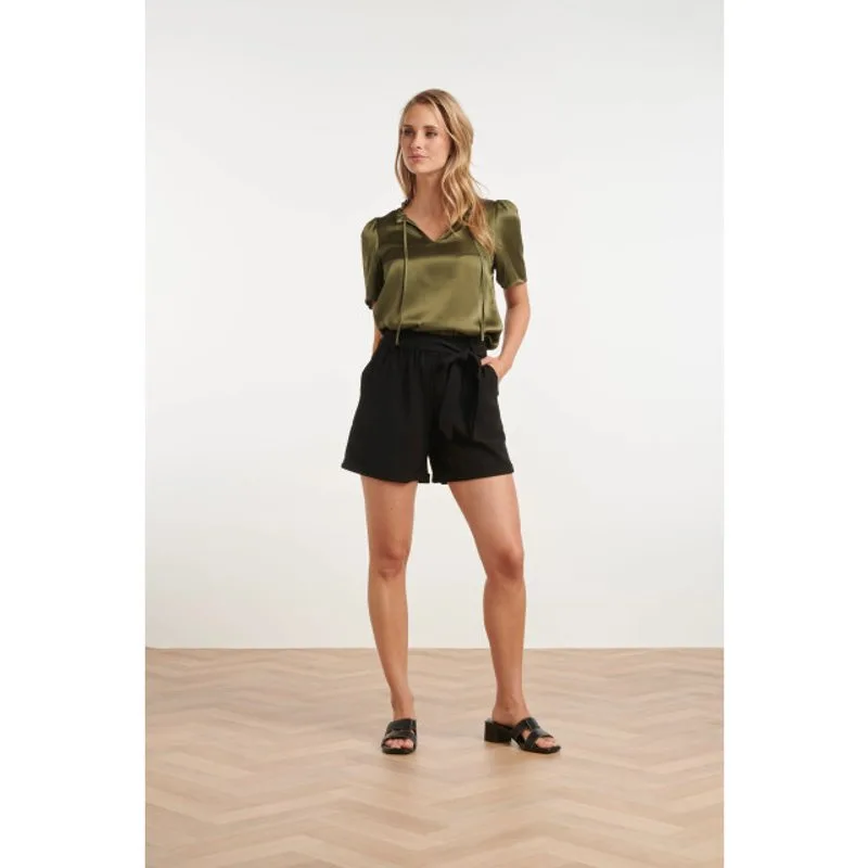 Deze fuchsia satijnen top van Smashed Lemon is de perfecte aanvulling op je garderobe. Het ontwerp heeft een elegante V-hals, afgewerkt met speelse touwtjes die je naar wens kunt strikken. De ruches rondom de halslijn geven de top een romantische uitstraling, terwijl de korte pofmouwen met iets bredere manchetten zorgen voor een luchtige en vrouwelijke look. De top is gemaakt van een comfortabele mix van 54% viscose en 46% rayon, wat zorgt voor een zachte en soepele stof die perfect is voor zowel een casual als chique gelegenheid. Draag deze top op een jeans voor een trendy look of combineer hem met een mooie rok voor een avondje uit. Dankzij de levendige fuchsia kleur en het verfijnde ontwerp is deze top een echte must-have voor jouw Smashed Lemon collectie! Belangrijkste kenmerken: - V-hals met strikbare touwtjes en ruches - Korte pofmouwen met bredere manchetten - Gemaakt van 54% viscose en 46% rayon voor een zachte en soepele stofSpecificaties : * Stijl: tops * Print: uni *