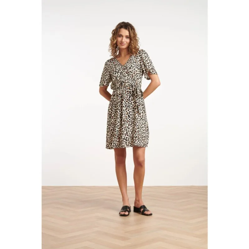 Voeg een vleugje wildheid toe aan je garderobe met de Smashed Lemon damesjurk in een stijlvolle bruin-zand dierenprint. Deze elegante jurk is ontworpen met een v-vormige overlap-halslijn die eindigt op de taille en een strik aan de zijkant voor een verfijnde touch. De elastische tailleband zorgt voor extra comfort en een flatterende pasvorm. De korte rechte mouwen en de lengte die net boven de knieën valt maken de jurk perfect voor verschillende gelegenheden. Gemaakt van 100% viscose biedt de jurk niet alleen een geweldig uiterlijk, maar ook een heerlijk draagcomfort. Belangrijkste kenmerken: - V-vormige overlap-halslijn met strik aan de zijkant - Elastische tailleband voor een perfecte pasvorm - Korte rechte mouwen en een lengte tot net boven de knie Deze Smashed Lemon jurk is een must-have voor elke modebewuste vrouw die houdt van een tijdloos design met een moderne twist.Specificaties : * Stijl: jurken * Print: dieren * Pasvorm: Losvallend * Lengte: Boven de knie * 0 *