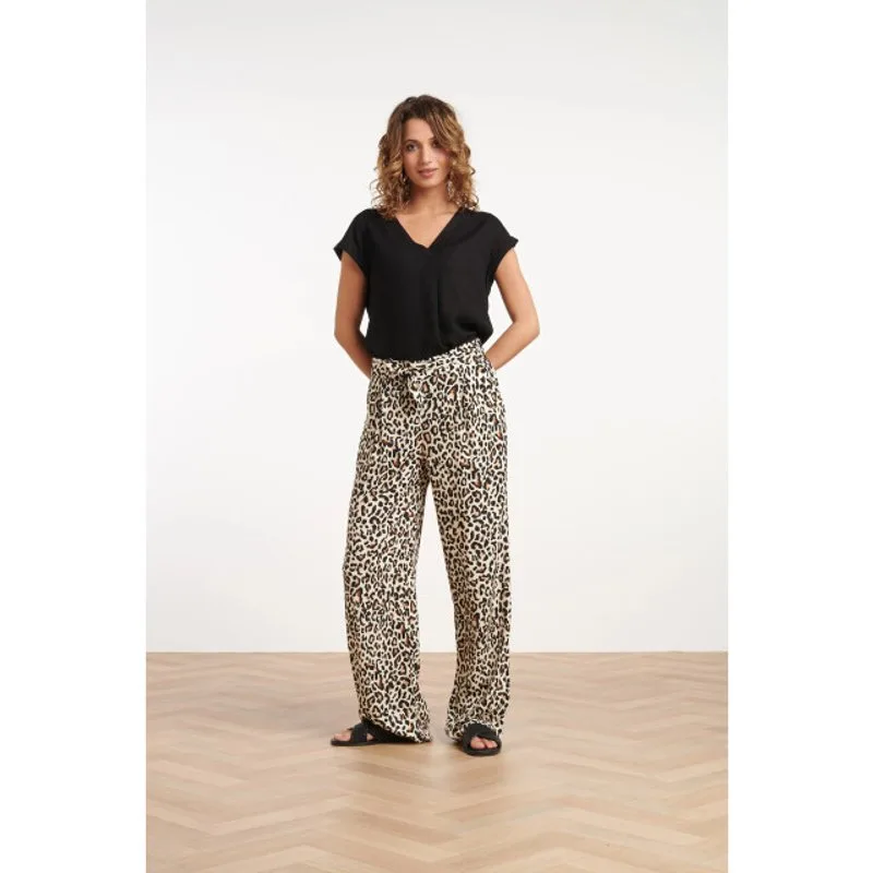 Deze stijlvolle damesbroek van Smashed Lemon is een must-have voor je garderobe! Gemaakt van 100% viscose biedt deze broek niet alleen een comfortabele pasvorm, maar is hij ook perfect voor elke gelegenheid. De broek heeft een flat waistband aan de voorkant en een elastische tailleband aan de achterkant voor extra comfort. De bijpassende riem maakt het geheel af en zorgt voor een modieuze uitstraling. Het kleine dierenprintje in bruin en zandtinten geeft de broek een speelse en elegante uitstraling. Met een rechte pasvorm is de broek zowel chique als comfortabel. Combineer hem met je favoriete top voor een look die zowel trendy als tijdloos is. Belangrijkste kenmerken: - Dierenprint in bruin en zandtinten voor een speelse, elegante look - Rechte pasvorm voor een flatterende en comfortabele fit - Gemaakt van 100% viscose voor een zacht en ademend gevoelSpecificaties : * Stijl: broeken * Print: dieren * Pasvorm: wijde * Lengte: lang * 0 * Country of Origin: : Made in Turkey