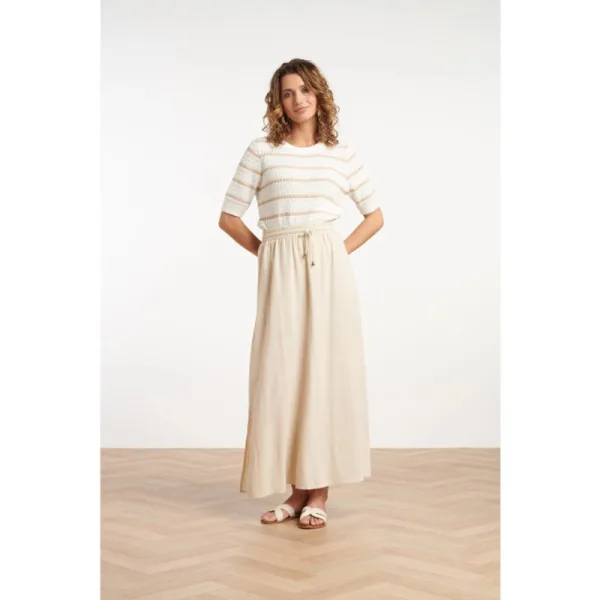 Voeg een vleugje elegantie en comfort toe aan je zomergarderobe met deze lichtblauwe linnen maxi rok van Smashed Lemon. Deze luchtige rok is ontworpen met een elastische tailleband en twee verstelbare trekkoorden, waardoor hij perfect aansluit op jouw figuur. De zijsplitten zorgen voor een speelse en elegante uitstraling, terwijl de losvallende, vloeiende stof een heerlijk draagcomfort biedt. Gemaakt van een hoogwaardige mix van 70% rayon en 30% linnen, voelt deze rok licht en ademend aan – ideaal voor warme dagen. Combineer met een eenvoudige top en sandalen voor een moeiteloze zomerse look of draag hem met een blouse en hakken voor een chique uitstraling. Belangrijkste kenmerken:- Luchtig en comfortabel – perfect voor zomerse dagen- Stijlvolle details – elastische tailleband met trekkoorden en speelse zijsplitten- Hoogwaardige materialen – ademend en licht dankzij de mix van rayon en linnen Specificaties : * Stijl: rokken * Print: uni * Pasvorm: Losvallend * Lengte: maxi