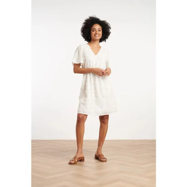 Til je garderobe naar een hoger niveau met deze prachtige korte jurk van Smashed Lemon, ontworpen voor de moderne vrouw die houdt van stijl en comfort. De jurk is voorzien van een elegante V-halslijn en korte mouwen, perfect voor warme dagen of een casual-chique look. Dankzij de elastische taille valt de jurk prachtig getailleerd, wat zorgt voor een vrouwelijke silhouet dat je figuur flatteert. De jurk is versierd met een delicate, geborduurde bloemenprint in een verfijnde crème witte kleur, wat zorgt voor een romantische en tijdloze uitstraling. Of je nu op zoek bent naar een veelzijdige outfit voor overdag of een stijlvolle keuze voor een avondje uit, deze Smashed Lemon jurk is een absolute must-have in je kledingkast. Kenmerken: - Korte mouwen en V-hals voor een elegante look - Elastische taille voor een flatterende pasvorm - Geborduurde bloemenprint in crème wit voor een romantische touch De perfecte balans tussen casual en chic, deze jurk is onmisbaar voor elke modieuze vrouw.