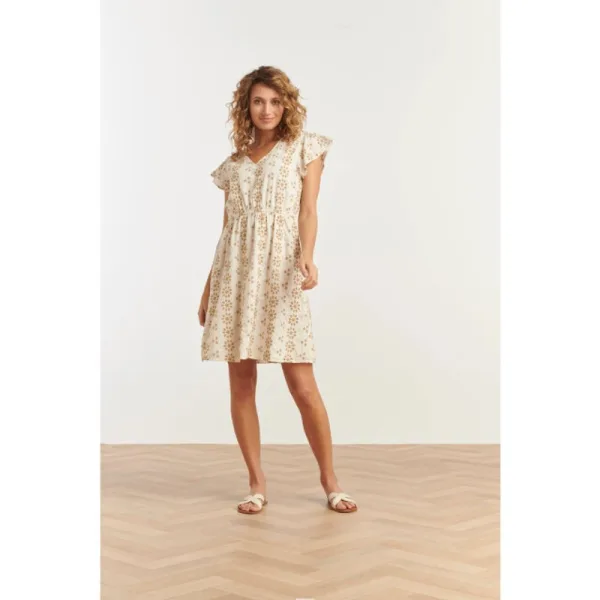 Stijlvol en elegant, deze getailleerde jurk van Smashed Lemon is een perfecte keuze voor elke gelegenheid. De jurk is ontworpen met een flatterende V-halslijn en korte ruffle mouwen, wat zorgt voor een speelse en vrouwelijke uitstraling. De subtiele geborduurde bloemenprint in crème wit en zandkleur voegt een verfijnd detail toe aan de jurk. Dankzij het elastiek in de taille wordt je silhouet mooi geaccentueerd, terwijl het comfort behouden blijft. Deze jurk is perfect voor een zomerse dag of een feestelijke avond en laat je altijd stralen. Kenmerken: - V-halslijn en korte ruffle mouwen voor een speelse, vrouwelijke look - Geborduurde bloemenprint in elegante crème wit en zandkleur - Elastische taille voor een flatterende, getailleerde pasvormSpecificaties : * Stijl: jurken * Print: Bloemen borduur * Pasvorm: Getailleerd * Lengte: Boven de knie * Model: 180 cm lang en draagt maat S/141 * Production country: Made in India * Kleur: Wit, Beige * Lining: No Lining *