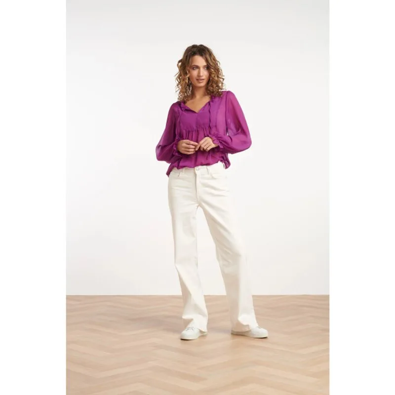 Voeg een vleugje verfijning toe aan je garderobe met deze los vallende top van Smashed Lemon. De top is ontworpen in een prachtige paarse chiffon stof die zacht en luchtig aanvoelt, perfect voor elke gelegenheid. De sierlijke V-halslijn benadrukt je decolleté op een elegante manier, terwijl de lange mouwen een chique en vrouwelijke uitstraling geven. De los vallende pasvorm zorgt voor een ontspannen en comfortabele feel, waardoor deze top ideaal is voor zowel een casual dagje uit als een elegante avond. Combineer het met een rok of broek voor een veelzijdige look die altijd in de mode is. Kenmerken: - Sierlijke V-halslijn en lange mouwen voor een elegante uitstraling - Los vallende pasvorm voor extra comfort en een relaxte stijl - Gemaakt van zachte, luchtige paarse chiffon stof voor een luxe gevoelSpecificaties : * Stijl: tops * Print: Uni * Pasvorm: losvallend * Lengte: boven de knie * Model: 180 cm lang en draagt maat S/40 * Production country: Made in P.R.C. *