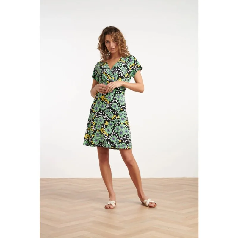 Breng kleur en energie in je garderobe met deze prachtige korte jurk van Smashed Lemon. De jurk is ontworpen met een speelse bloemenprint in groen, wit, geel en zwart die zorgt voor een vrolijke en frisse uitstraling. De V-halslijn met overslag en de kleine plooitjes die uitlopen tot de taille geven de jurk een elegante, vrouwelijke flair. Gemaakt van zachte stretchstof, sluit de jurk perfect aan tot de taille en loopt daarna uit naar beneden voor een flatterend en comfortabel silhouet. Deze jurk is ideaal voor een zonnige dag, een feestje of een andere gelegenheid waarbij je wilt stralen. Kenmerken: - V-halslijn met overslag en plooitjes die de taille accentueren - Vrolijke bloemenprint in groen, wit, geel en zwart voor een frisse, energieke look - Zachte stretchstof die comfortabel aanvoelt en een flatterende pasvorm biedtSpecificaties : * Stijl: jurken * Print: Abstract * Pasvorm: getailleerd * Lengte: Kort * Model: 180 cm lang en draagt maat S/49 * Production country: