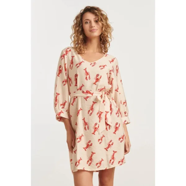 Voeg een speelse en unieke twist toe aan je zomeroutfits met deze korte jurk van Smashed Lemon. De jurk is ontworpen met een vrolijke kreeftenprint in fel rood op een creme witte achtergrond, wat zorgt voor een levendige en opvallende look. De V-halslijn geeft de jurk een elegante touch, terwijl de driekwart mouwen de perfecte balans bieden tussen stijl en comfort. De jurk heeft een ceintuur in de taille, waarmee je je figuur mooi kunt accentueren. Deze jurk is ideaal voor een dagje uit of een casual feest. Kenmerken: - V-halslijn en driekwart mouwen voor een elegante en comfortabele pasvorm - Speelse kreeftenprint in rood met een creme witte achtergrond voor een vrolijke uitstraling - Ceintuur in de taille voor een getailleerde pasvorm en extra stijl Specificaties : * Stijl: jurken * Print: Abstract * Pasvorm: getailleerd * Lengte: boven de knie * Model: 180 cm lang en draagt maat S/50 * Production country: Made in P.R.C. * Kleur: Wit-Rood * Lining: no lining *