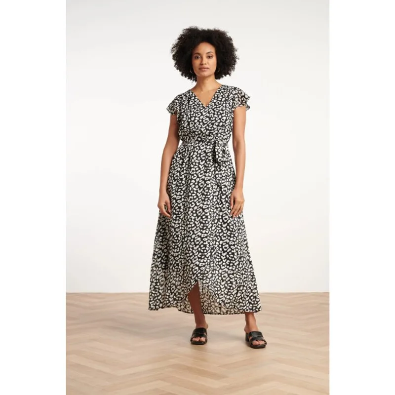De lange chiffon jurk van Smashed Lemon is de perfecte keuze voor een elegante en verfijnde uitstraling. De jurk heeft een sierlijke V-halslijn en korte mouwen, waardoor het een vrouwelijk en luchtig silhouet biedt. De mooie dierenprint in wit op een zwarte achtergrond geeft de jurk een klassieke, maar moderne uitstraling die zich perfect leent voor zowel feestelijke als formele gelegenheden. De getailleerde pasvorm wordt geaccentueerd door de ritssluiting aan de zijkant en het bijpassende ceintuur in de taille. Deze jurk is een ideale keuze voor elke vrouw die houdt van stijlvolle eenvoud met een vleugje speelsheid. Kenmerken: - Sierlijke V-halslijn en korte mouwen voor een elegante uitstraling - Dierenprint in wit met zwarte achtergrond voor een tijdloze look - Getailleerde pasvorm met ritssluiting aan de zijkant en bijpassend ceintuur in de tailleSpecificaties : * Stijl: jurken * Print: Abstract * Pasvorm: getailleerd * Lengte: Maxi * Model: 180 cm lang en draagt maat