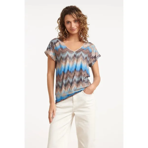 Breng kleur en comfort samen met deze stijlvolle stretch top van Smashed Lemon. De top heeft een vrolijke abstracte print in speelse blauw en bruin tinten, waardoor je look direct opvalt. Dankzij de losvallende pasvorm en zachte stretchstof biedt deze top de perfecte combinatie van comfort en stijl. De V-hals geeft de top een elegante touch, terwijl de korte mouwen zorgen voor een luchtige en zomerse uitstraling. Deze veelzijdige Smashed Lemon top is ideaal voor zowel casual outfits als meer geklede gelegenheden, en kan gemakkelijk gecombineerd worden met een rok of broek voor een frisse, modieuze look. Kenmerken: - Vrolijke abstracte print in blauw en bruin tinten voor een opvallende uitstraling - Losvallend model met comfortabele stretchstof voor optimale bewegingsvrijheid - V-hals en korte mouwen voor een luchtige en elegante stijlSpecificaties : * Stijl: tops * Print: Zigzag * Pasvorm: Losvallend * Lengte: Kort * Model: 180 cm lang en draagt maat S/129 * Production