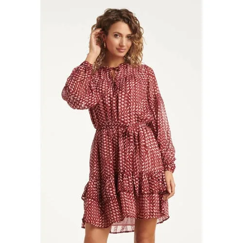 Smashed Lemon Bordeaux en babyroze geometrische jurk