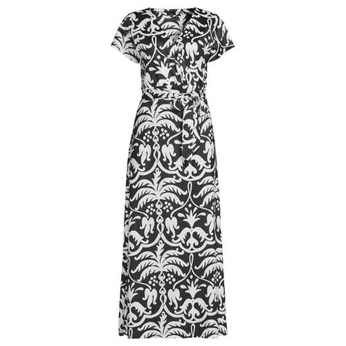 Deze zomerse midi jurk met A-lijn en bladprint van Smashed Lemon geeft je outfit direct een frisse en vrouwelijke uitstraling. De zwart-witte all-over bladprint valt mooi op en blijft toch rustig, waardoor de jurk zowel overdag als in de avond goed te dragen is. De middel-lange lengte en het lichte, soepele materiaal maken dit een fijne keuze voor warme dagen.Verfijnde details voor elke dag A-lijn model dat elegant langs je lichaam valt Middel-lange lengte voor een stijlvolle, zomerse look Overslagkraag die een mooie halslijn creëert Striksluiting in de taille voor een verstelbare pasvorm Korte, rechte mouwen voor licht draagcomfort Zwarte en witte all-over bladprint die direct opvalt Gemaakt van een soepele stof met 5% spandex voor lichte stretch Geen zakken voor een gladde, gestroomlijnde uitstralingIdeaal voor zomerse momentenDeze jurk past bij veel verschillende momenten in de zomer. Combineer met sandalen voor een ontspannen dag in de stad of met hakken en subtiele sieraden voor een etentje. De striksluiting in de taille kun je strakker of losser knopen, zodat de pasvorm aansluit op jouw voorkeur.De stijl van Smashed LemonSmashed Lemon staat bekend om opvallende prints en vrouwelijke silhouetten die makkelijk te stylen zijn. Het merk richt zich op draagbare mode met een herkenbare uitstraling, zodat je met weinig moeite een complete look creëert die past bij jouw dagelijkse leven.Een luchtige jurk waarmee je in één keer klaar bent voor zonnige dagen en zwoele avonden.