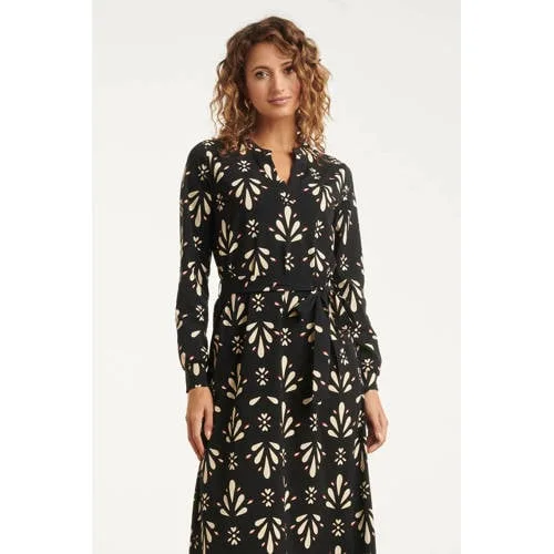 Stijlvolle zwart-witte dames midi-jurk van Smashed Lemon, uitgevoerd in een luchtige travel kwaliteit stof met ornamentale print. Deze losvallende jurk is gemaakt van ademend, kreukvrij materiaal met 4-way stretch voor ultiem draagcomfort die ideaal is voor dagelijks gebruik , reizen of een elegante gelegenheid. Het gepaneelde V-hals design en de lange mouwen zorgen voor een vrouwelijke en verfijnde uitstraling, terwijl de easy-care stof makkelijk te wassen is en perfect in vorm blijft. Belangrijkste kenmerken: - Zwart-witte ornamentprint voor een elegante en tijdloze look - Travel quality: ademend, kreukvrij, stretchy en makkelijk te wassen - Losvallende midi-jurk met lange mouwen en gepaneerde V-halsSpecificaties : * Stijl: Jurken * Print: Ornamentaal * Pasvorm: Losvallend * Lengte: midi * Model is: 175 cm tall and wears size S/36 * Country of origin: Made in P.R.C. * Kleur: Black-Off white * Lining: No * Fabric composition: 84%Polyamide 16%Elastane