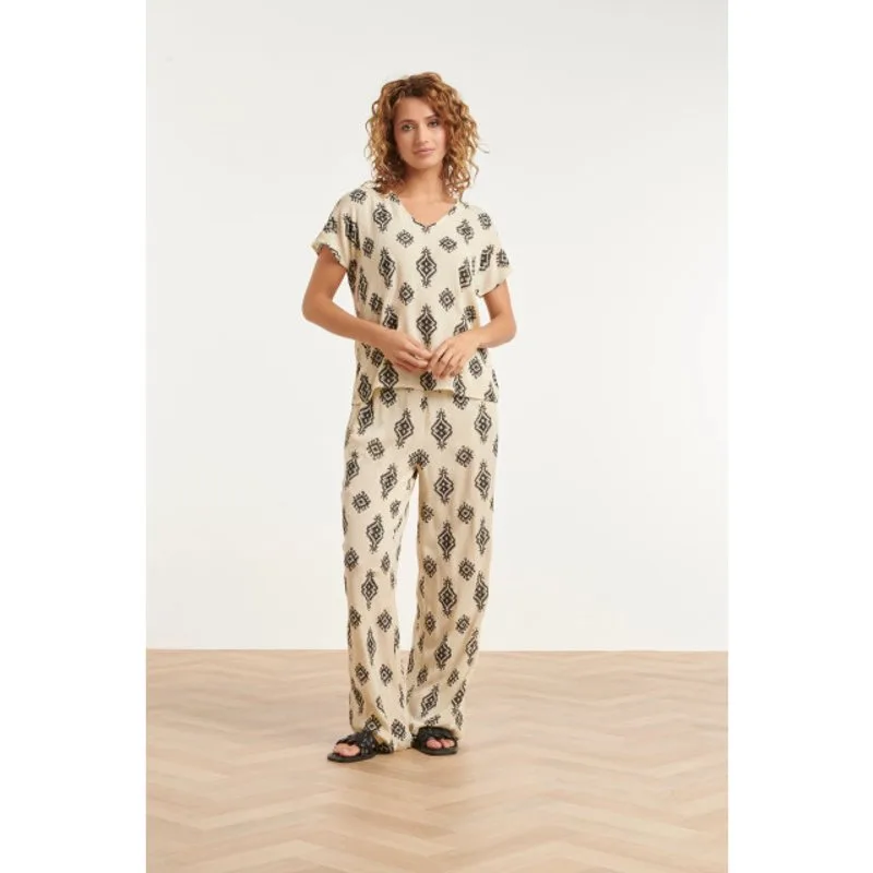Smashed Lemon Beige broek met zwarte aztec print | Prijzen
