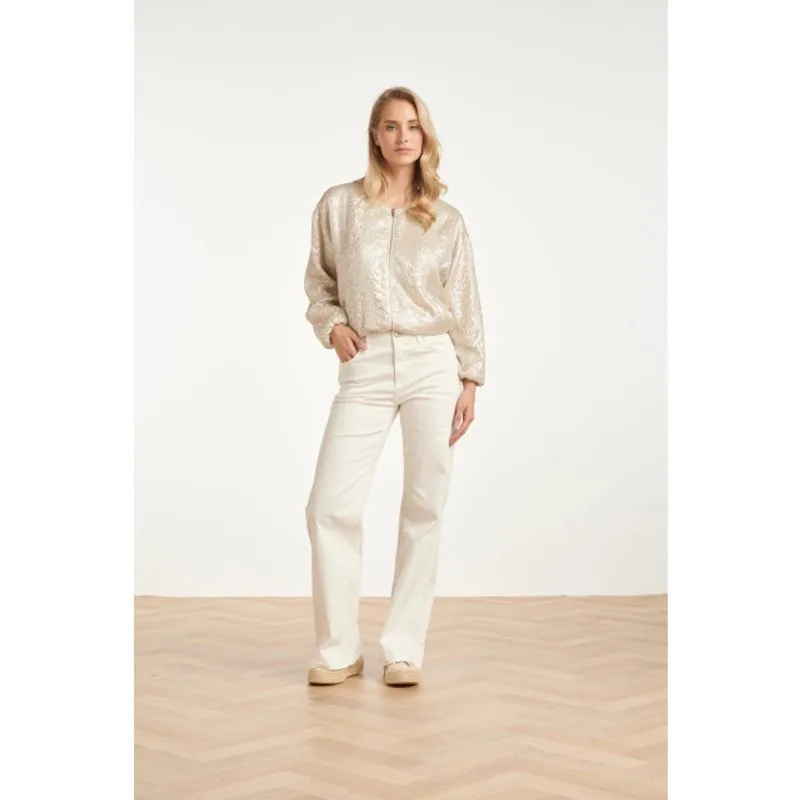 Dit bomberjack van Smashed Lemon is dé eyecatcher van dit seizoen. De stof is voorzien van een bijzondere slangprint met een metallic finish die het licht prachtig vangt. Het jack heeft een moderne, licht oversized pasvorm met een sportieve ritssluiting en een ronde hals. De elastische boorden aan de onderzijde en de mouwen zorgen voor een nonchalant gepofte look. Dit Smashed Lemon jasje is de perfecte manier om een eenvoudige outfit direct een modieuze en luxe upgrade te geven. Belangrijkste kenmerken : Opvallende slangprint met een schitterende metallic glans. Sportief bombermodel met een handige ritssluiting. Elastische details voor een trendy en comfortabel silhouet.Specificaties : * Stijl: Jasje * Print: Uni * Pasvorm: Losvallend * Lengte: Kort * Model is: 176cm tall and wears size S/36 * Country of origin:: Made in P.R.C. * Verkrijgbaar in kleuren: Wit * Lining: 100% Polyester lining * Fabric composition: 100% polyester