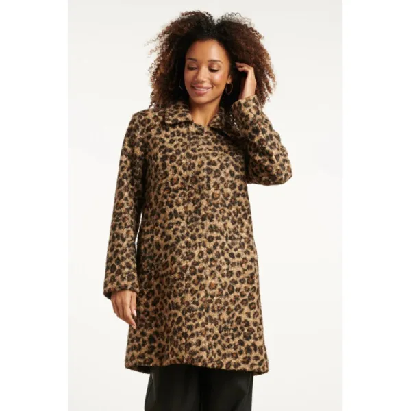 Smashed Lemon Boucl dierenprint jas in camel en zwart |