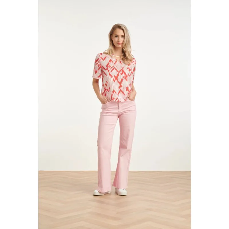Smashed Lemon Dames top met grafische aztec print in roze en rood | Prijzen