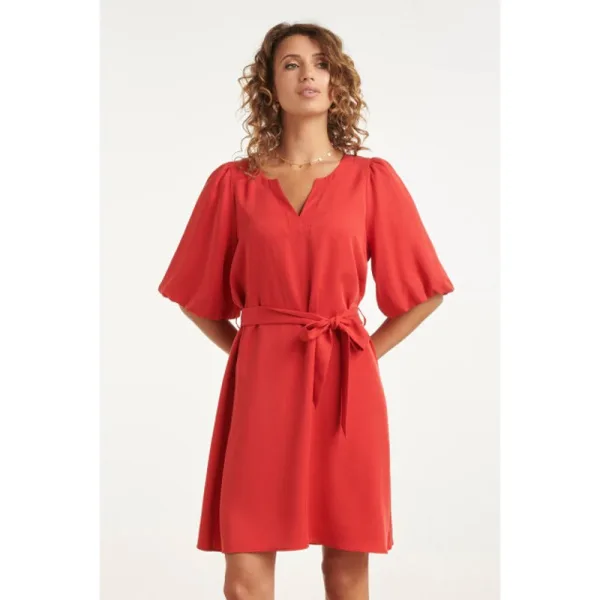 Smashed Lemon Elegante alijn jurk met vhals en strikceintuur