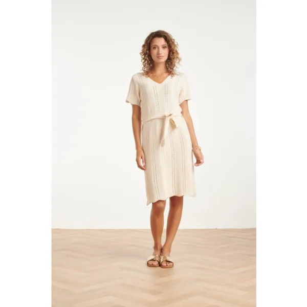 Smashed Lemon Gebreide jurk met v-hals en strikceintuur | Prijzen