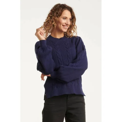 Smashed Lemon gebreide trui marine met kabels Prijzen