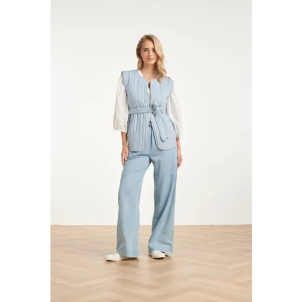 Smashed Lemon Gevoerde bodywarmer met strikceintuur |