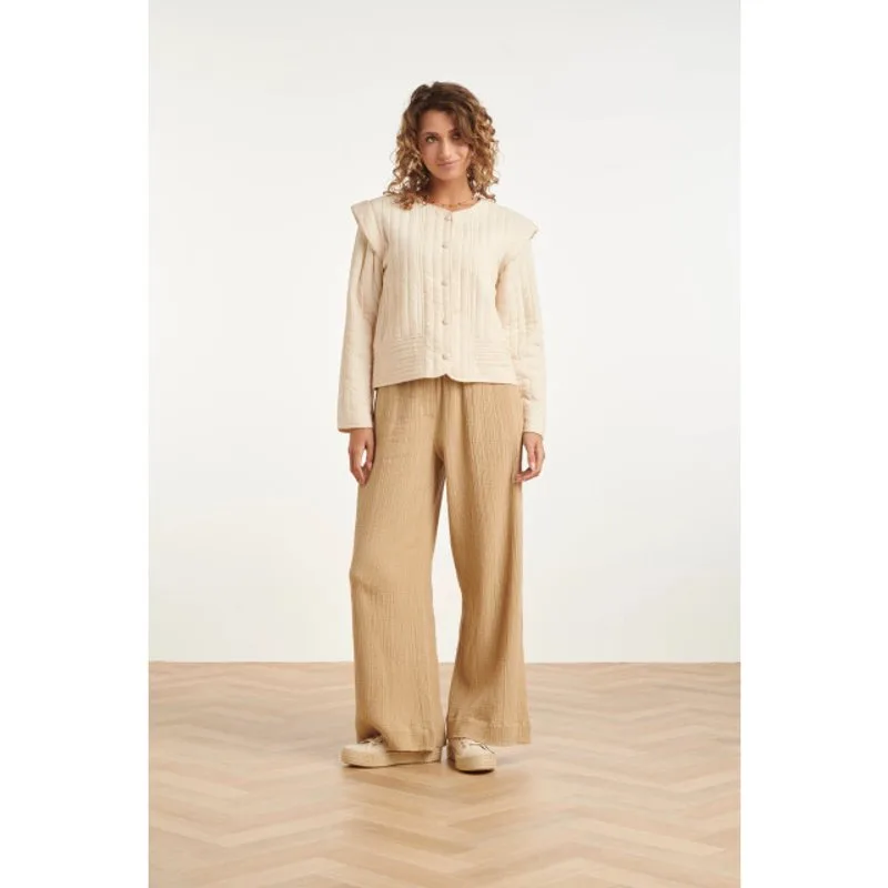 Voeg een vleugje textuur en warmte toe aan je outfit met dit stijlvolle doorgestikte jasje van Smashed Lemon. Dit jasje onderscheidt zich door het verfijnde verticale stiksel en de opvallende horizontale details aan de onderzijde en bij de zakken. Het ontwerp heeft een moderne ronde hals en elegante knopen in dezelfde kleurtint, wat zorgt voor een rustige en luxe uitstraling. De subtiele schouderdetails geven het jasje een krachtig silhouet zonder in te leveren op vrouwelijkheid. Of je dit Smashed Lemon item nu draagt als tussenjasje of als onderdeel van je binnenoutfit, je bent verzekerd van een modieuze look. Belangrijke kenmerken: Uniek verticaal doorgestikt patroon voor een moderne en gestructureerde uitstraling. Voorzien van een elegante ronde hals en bijpassende stoffen knopen. Comfortabele pasvorm met subtiele schouderaccenten voor een krachtig silhouet.Specificaties : * Stijl: Jasje * Print: Uni * Pasvorm: Losvallend * Lengte: Kort * Model is: 174cm tall and wears