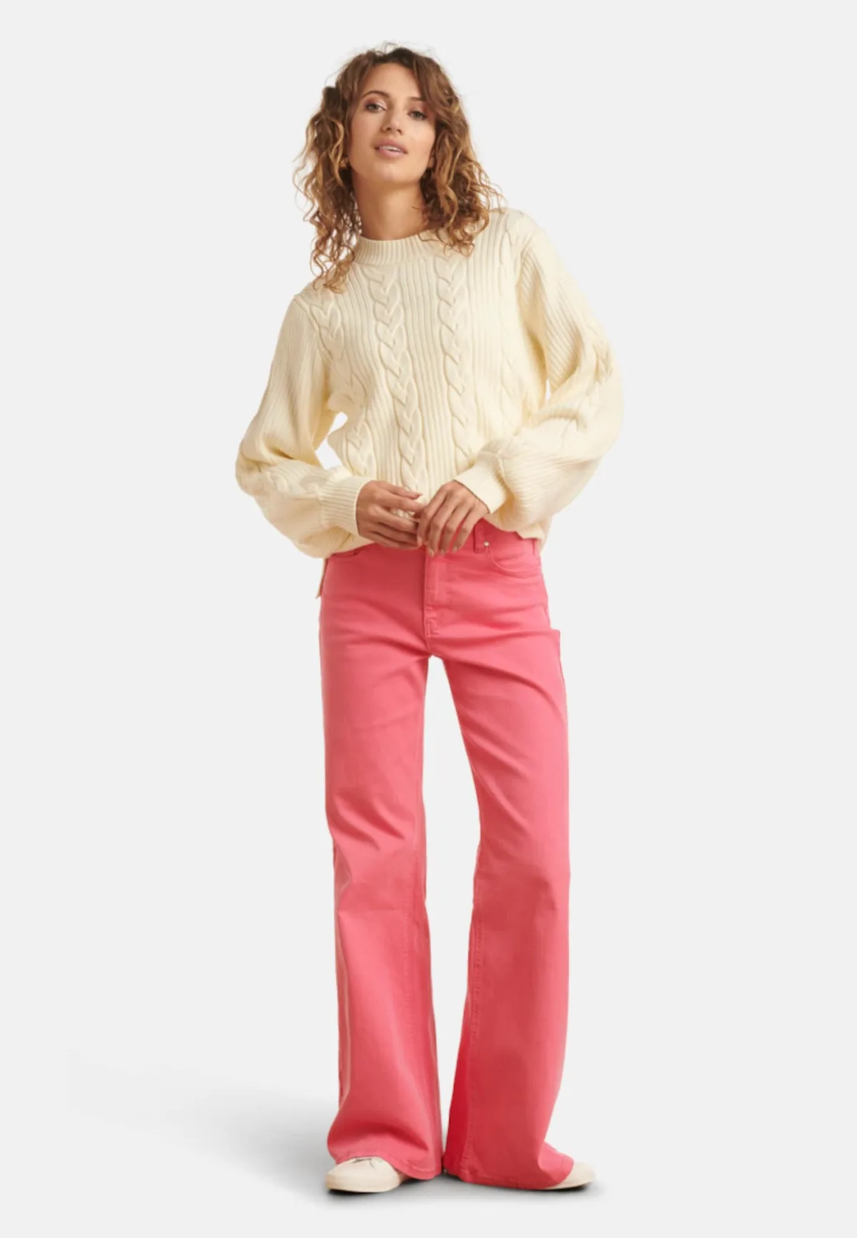 Deze mediumblauwe jeans van Smashed Lemon is een perfecte combinatie van comfort en stijl. Het flared model creëert een elegant silhouet, terwijl de zachte denim met stretch meebeweegt voor ultiem draaggemak. Dankzij de klassieke wassing is de broek eindeloos te combineren – van casual met sneakers tot gekleed met een blazer en hakken. Belangrijkste kenmerken: - Gemaakt van 98% katoen met comfortabele stretch - Mediumblauw denim met tijdloze uitstraling - Uitlopende pijpen voor een slank en vrouwelijk silhouet - Hoge tailleband voor extra ondersteuning en stijl Verkrijgbaar in Cerise, Grey denim, medium blue denim, black.Specificaties : * Stijl: Jeans * Print: Uni * Pasvorm: Uitlopend * Lengte: Lang * Model is: 176 cm tall and wears size S/36 * Country of origin: Made in P.R.C. * Verkrijgbaar in kleuren: Roze, Grijs, Blauw, Zwart * Lining: No * Fabric composition: 98% cotton 2% spandex