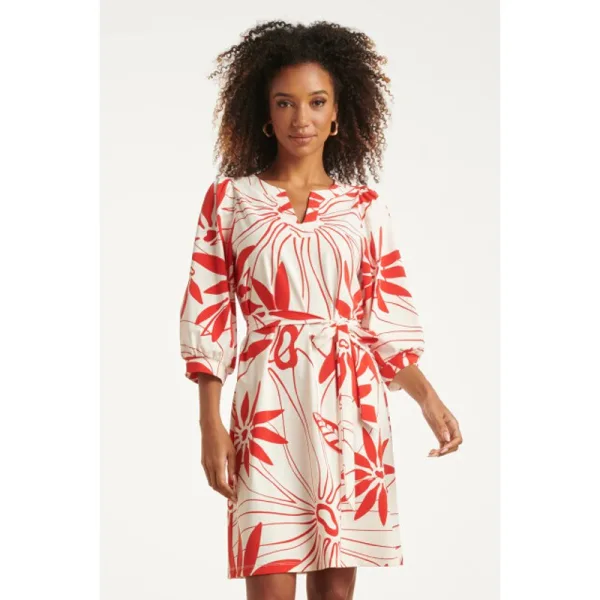 Specificaties: Smashed Lemon Jurk met rode bloemenprint in comfortabele travelstof |