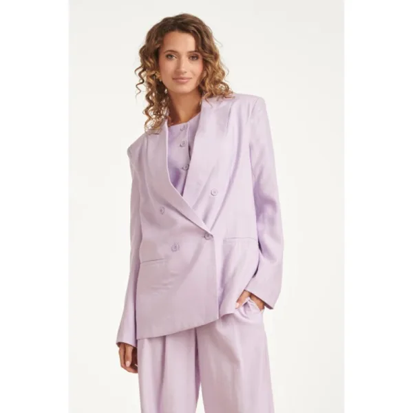 Deze stijlvolle blazer van Smashed Lemon is een onmisbaar item voor de moderne vrouw die houdt van een krachtige, zakelijke uitstraling. Het double-breasted ontwerp met klassieke revers geeft de blazer een tijdloze look die zowel formeel als casual gedragen kan worden. De blazer is vervaardigd uit een hoogwaardige linnen-look stof, waardoor hij licht en luchtig aanvoelt zonder in te leveren op een luxe uitstraling. Of je hem nu combineert met de bijpassende pantalon of op een jeans, deze Smashed Lemon blazer tilt elke outfit naar een hoger niveau. Belangrijkste kenmerken : Elegante double-breasted sluiting met verfijnde knopen. Hoogwaardige linnen-look materiaal voor optimaal draagcomfort. Klassieke revers en een licht getailleerde pasvorm voor een vrouwelijk silhouet.Specificaties : * Stijl: Blazer * Print: Uni * Pasvorm: Losvallend * Lengte: Lang * Model is: 174cm tall and wears size S/36 * Country of origin:: Made in P.R.C. * Verkrijgbaar in kleuren: Lila, Beige *