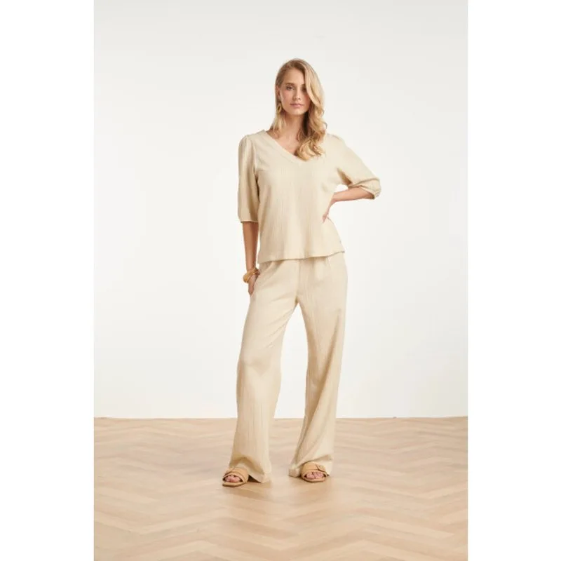 Smashed Lemon Linnen look wide leg broek in crème beige | Prijzen