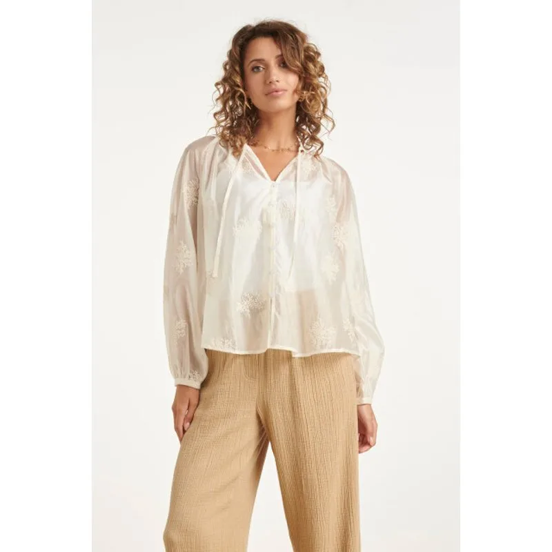 Smashed Lemon Luchtige bohoblouse met geborduurde print