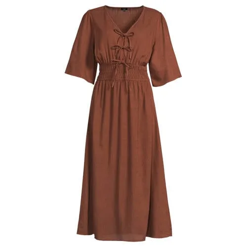 Smashed Lemon midi zomerjurk met smockwerk bruin Prijzen