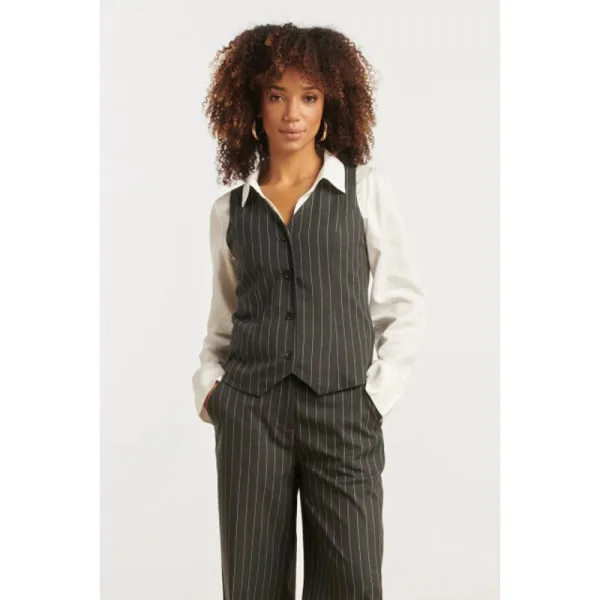 Smashed Lemon Modieus en getailleerd grijs en wit pinstriped gilet...