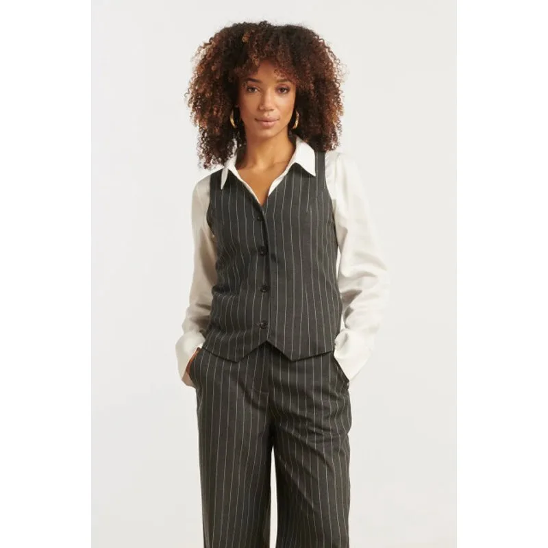 Smashed Lemon Modieus en getailleerd grijs en wit pinstriped gilet |