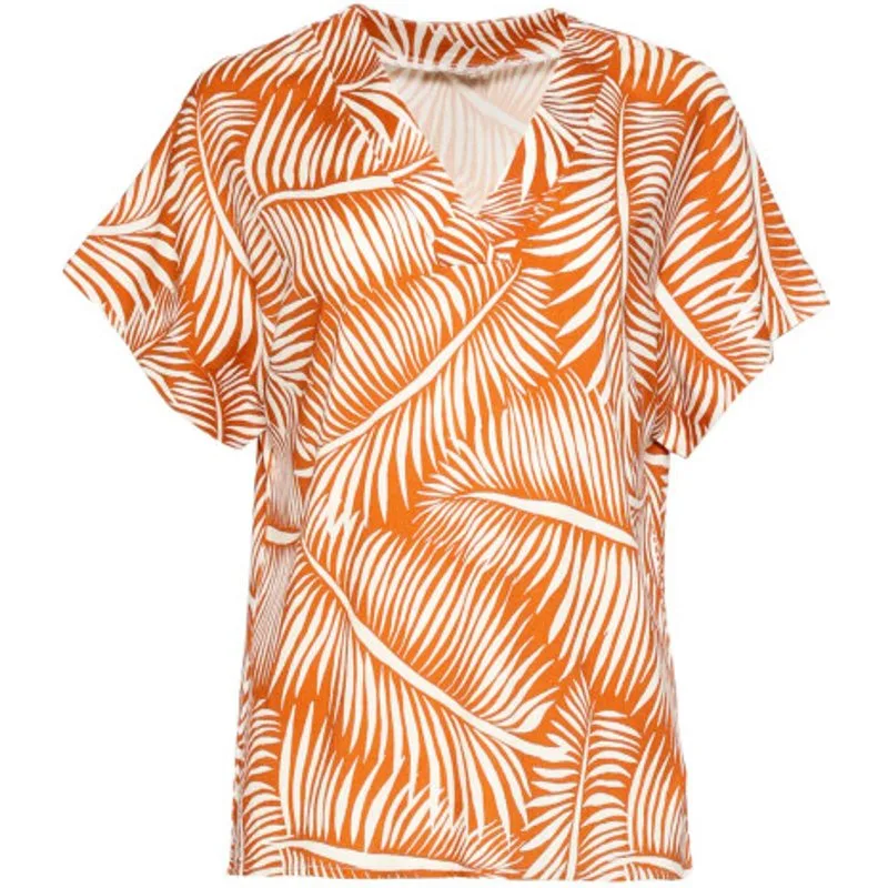 Deze stijlvolle top van Smashed Lemon is een echte must-have voor liefhebbers van een natuurlijke en trendy look. De brique en off-white bladprint geeft deze top een speelse en elegante uitstraling, perfect voor zowel casual als chique gelegenheden. Dankzij de ronde halslijn en korte mouwen is de top comfortabel en veelzijdig te dragen. Gemaakt van 99% rayon, voelt de stof heerlijk zacht aan op de huid en biedt het een lichte stretch voor een optimale pasvorm. Combineer deze top met een jeans voor een casual look of draag hem met een rok voor een stijlvolle outfit. Belangrijkste kenmerken:- Trendy bladprint in brique en off-white- Comfortabele pasvorm met korte mouwen en ronde halslijn- Gemaakt van zachte, ademende rayon met stretchSpecificaties : * Stijl: tops * Print: bladeren * Pasvorm: losvallend * Lengte: kort * 0 * Country of Origin: : Made in P.R.C. * Kleur: Cognac, Wit * Lining: no * fabric composition: 99% rayon , 1% spandex