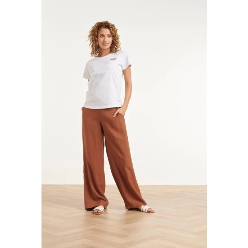 Creëer een krachtig silhouet met deze prachtige wide-leg pantalon van Smashed Lemon. De broek is ontworpen met rechte, wijde pijpen die je benen optisch verlengen en zorgen voor een elegante uitstraling. Smashed Lemon heeft gekozen voor een gladde afwerking bij de tailleband, waardoor de broek perfect aansluit en mooi plat valt onder een top of blouse. De soepele stof beweegt graciel mee terwijl je loopt, wat deze pantalon van Smashed Lemon tot de perfecte mix van comfort en zakelijke chic maakt. Belangrijke kenmerken: Modieus wide-leg model voor een verlengend effect. Gladde tailleband voor een strakke en elegante pasvorm. Vervaardigd van een kwalitatieve stof die prachtig valt.Specificaties : * Stijl: Broeken * Print: Uni * Pasvorm: Losvallend * Lengte: Lang * Model is: 176cm tall and wears size S/36 * Country of origin:: Made in Turkey * Verkrijgbaar in kleuren: Army, Bruin * Lining: No * Fabric composition: %100 Viscose