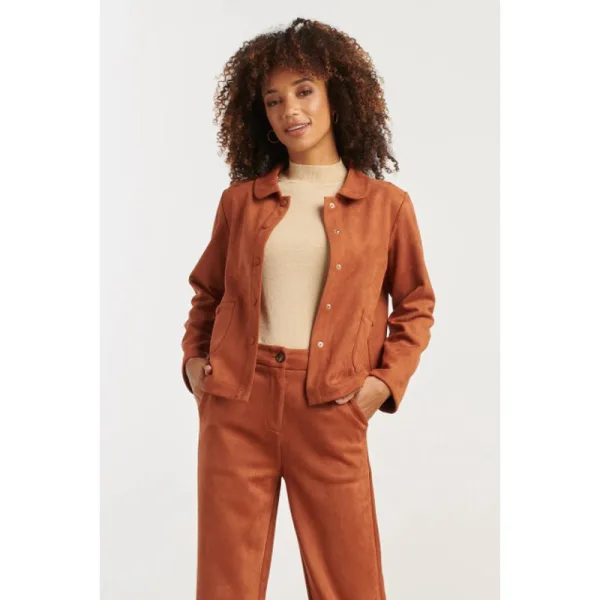 Army groen suède jasje van Smashed Lemon geeft elke outfit een stoere, moderne uitstraling. Het korte model is ontworpen met een klassieke kraag, een blinde knoopsluiting voor een strakke look en twee handige zakken op de voorkant. De losvallende pasvorm maakt het jasje ideaal voor laagjes, terwijl de zachte suède stof zorgt voor een comfortabele en luxe feel. Perfect voor het najaar of frisse lentedagen. Belangrijkste kenmerken: - Army groene kleur voor een trendy, krachtige look - Kort suède jasje met losvallende pasvorm - Voorzien van klassieke kraag en blinde knoopsluiting - Twee functionele zakken aan de voorkant - Gemaakt van zacht suède, ideaal voor het tussenseizoen Verkrijgbaar in Army green, cognac.Specificaties : * Stijl: Jasje * Print: Uni * Pasvorm: Losvallend * Lengte: Kort * Model is: 173 cm tall and wears size S/36 * Country of origin: Made in P.R.C. * Verkrijgbaar in kleuren: Army, Cognac * Lining: No * Fabric composition: 95%Polyester 5%spandex
