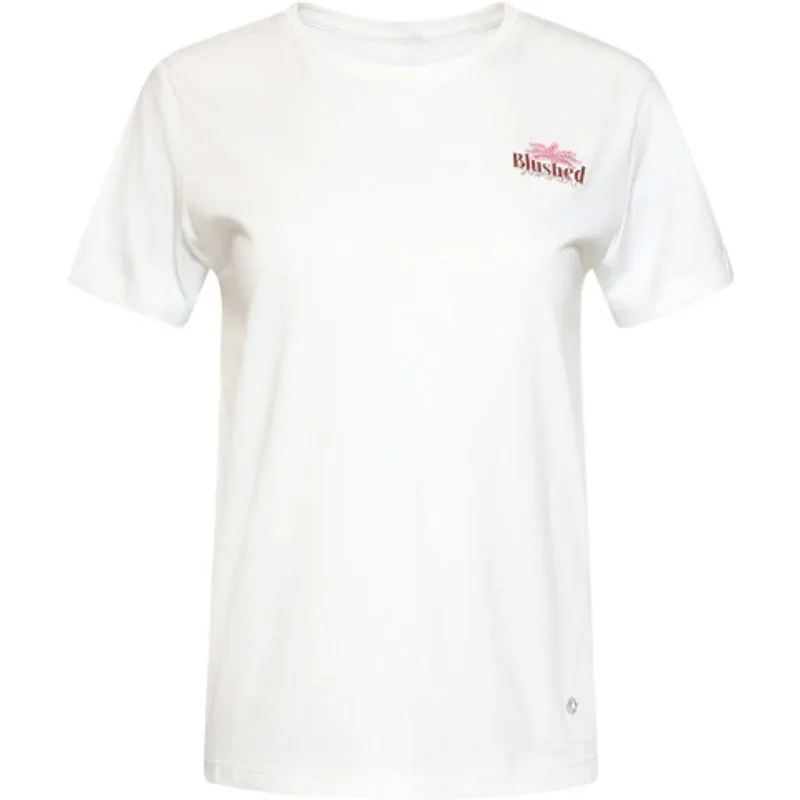 Geef je casual outfit een zomerse en vrouwelijke touch met dit prachtige witte T-shirt van Smashed Lemon. Dit shirt is veel meer dan een simpele basis; het combineert comfort met een uniek, artistiek ontwerp dat direct in het oog springt. Aan de voorzijde vind je een subtiel 'Blushed' logo op de borst, maar de echte verrassing zit aan de achterzijde. De achterkant van dit Smashed Lemon T-shirt is voorzien van een uitgebreide, kleurrijke print met de tekst 'Blushed Summer', omlijst door sierlijke krullen, hartjes en botanische details in zachte roze- en bruintinten. Het gebruik van verschillende texturen en fijne borduursels geeft het shirt een luxe uitstraling. Dankzij de klassieke ronde hals en de korte mouwen is dit item perfect voor een zonnige dag in het park of een terrasje in de stad. Combineer het met een mooie jeans of een luchtige rok voor de ultieme zomerlook. Belangrijke kenmerken: Unieke 'Blushed Summer' print op de achterzijde met verfijnde borduurdetails. Vervaardigd van