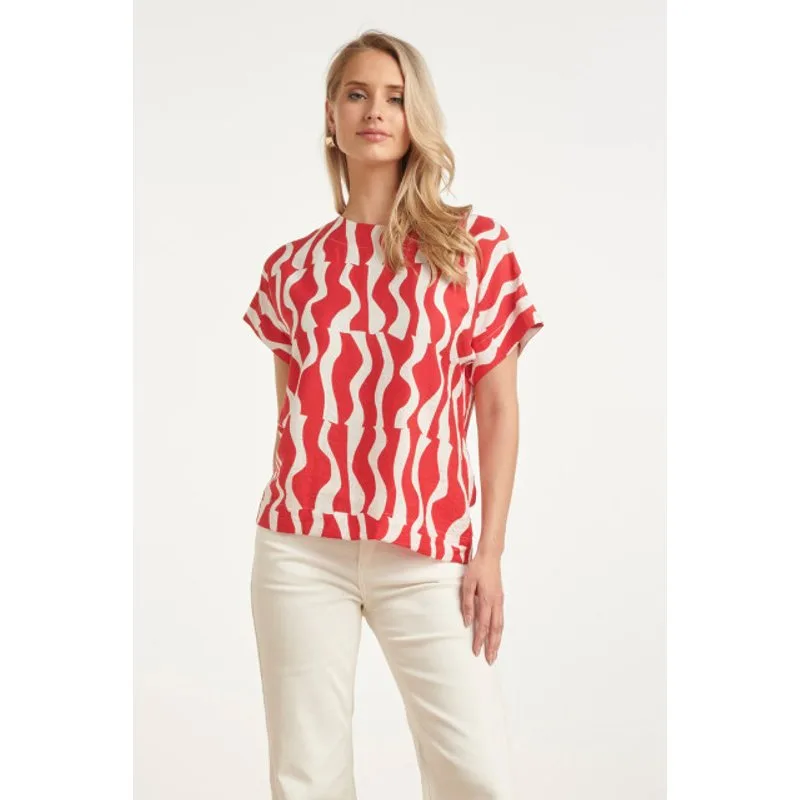 Smashed Lemon Top met korte mouwen en roodwitte golvende print