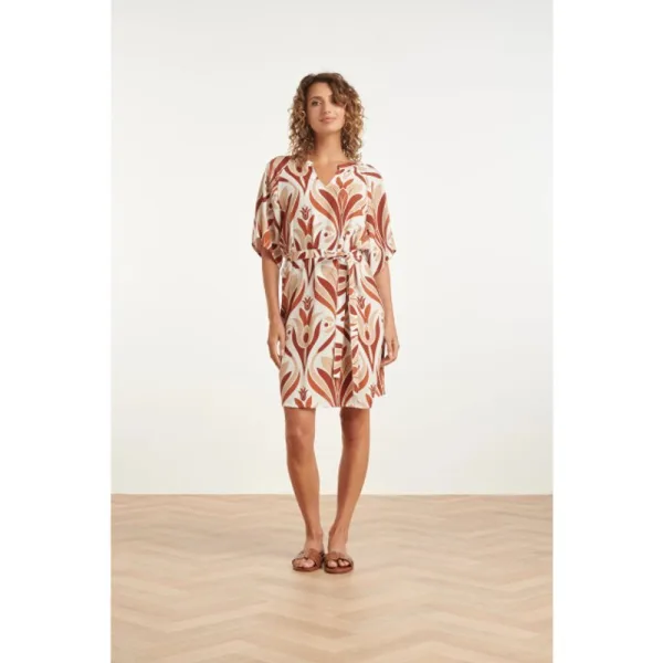 Deze luchtige tuniekjurk van Smashed Lemon straalt pure vrolijkheid uit. De jurk is versierd met een prachtige, grootschalige retro print met bloemmotieven in levendig oranje en rustig beige. Het is het ideale item voor dames die houden van een speelse en toch stijlvolle look. De jurk heeft een subtiele V-hals en opvallende wijde mouwen die zorgen voor een zwierig effect. De losse valling maakt het kledingstuk heerlijk comfortabel, terwijl het bijpassende lint in de taille de mogelijkheid biedt om meer vorm aan te brengen. Voeg een vleugje kleur toe aan je dag met deze unieke creatie van Smashed Lemon. Belangrijke kenmerken: Bohemian mouwen: Uitlopende flare-mouwen die zorgen voor een luchtige en speelse uitstraling. Veelzijdig model: Kan zowel los gedragen worden als getailleerd met het meegeleverde ceintuur. Opvallende retro look: Een unieke print die klassieke bloemmotieven combineert met moderne kleurnuances.Specificaties : * Stijl: Jurken * Print: Ornimental * Pasvorm:
