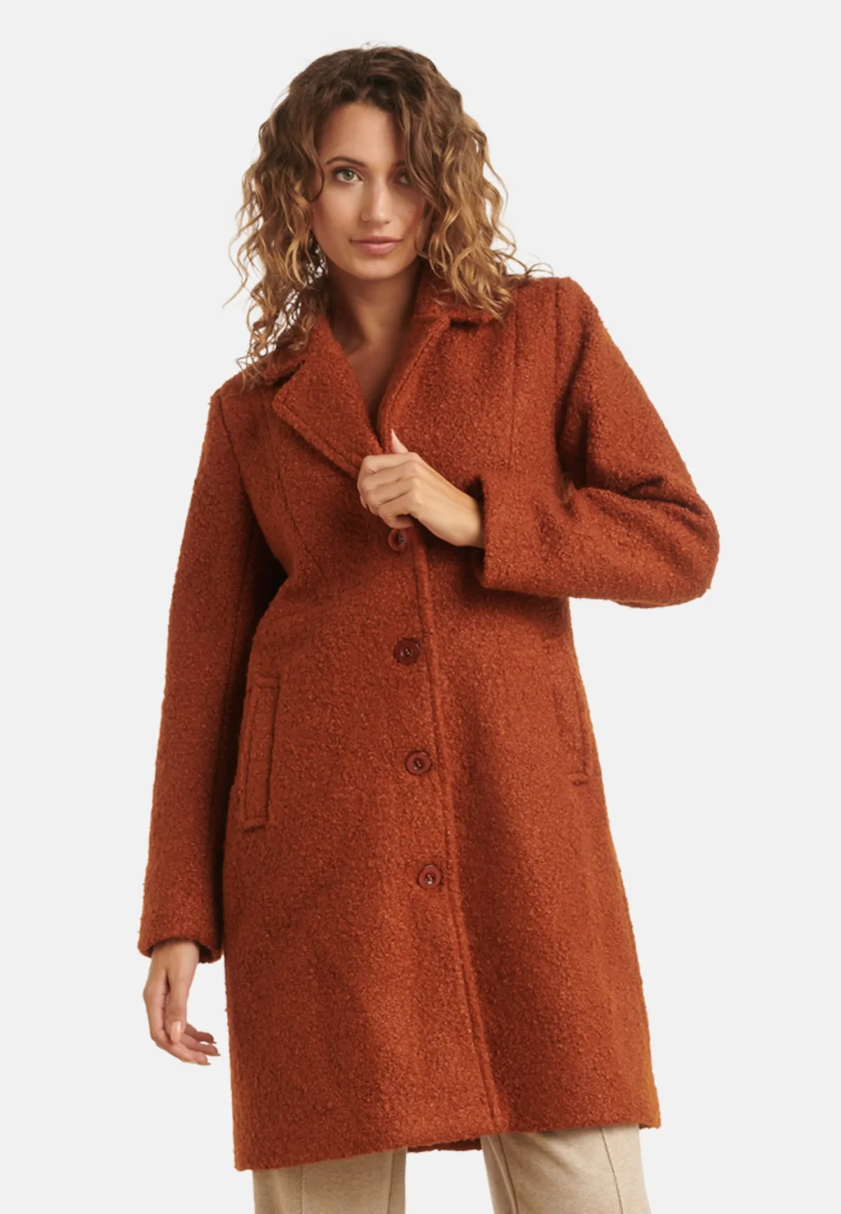 Deze elegante off-white jas van Smashed Lemon is een verfijnde toevoeging aan je herfst- en wintergarderobe. Gemaakt van een luxe boucléstof en ontworpen in een tijdloos uni design, straalt deze jas vrouwelijke klasse uit. Het model valt net boven de knie en is voorzien van een klassieke kraag met revers voor een stijlvolle uitstraling. De getailleerde pasvorm zorgt voor een flatterend silhouet, terwijl de bijpassende parelmoerknopen de look een chique, glanzende afwerking geven. Perfect te combineren met zowel casual als geklede outfits. Belangrijke punten: • Jas van zachte boucléstof in neutraal off-white voor een elegante uitstraling • Net boven de knie, met klassieke kraag en revers voor een tijdloos silhouet • Afgewerkt met bijpassende parelmoerknopen – subtiel en vrouwelijk Verkrijgbaar in white, Green, Army green, cognac.Specificaties : * Stijl: Jassen * Print: Uni * Pasvorm: Getailleerd * Lengte: Tot de knie * Model is: 175 cm tall and wears size S/36 * Country of