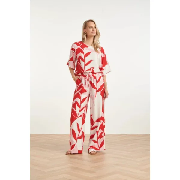 Smashed Lemon Wide leg broek met rood en roze bladprint | Prijzen