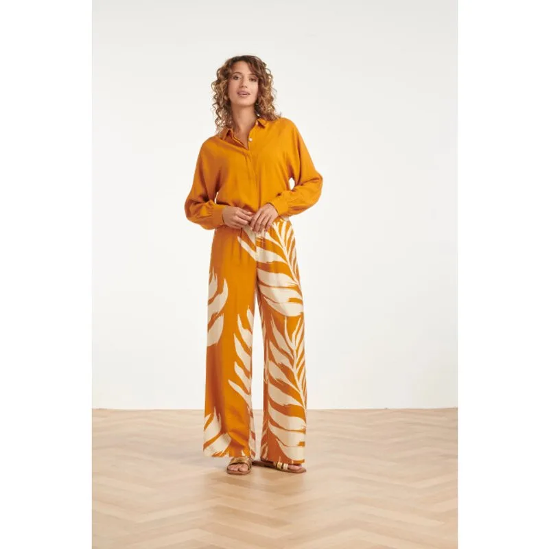 Smashed Lemon Wijde pantalon met botanische blad print oker geel | Prijzen
