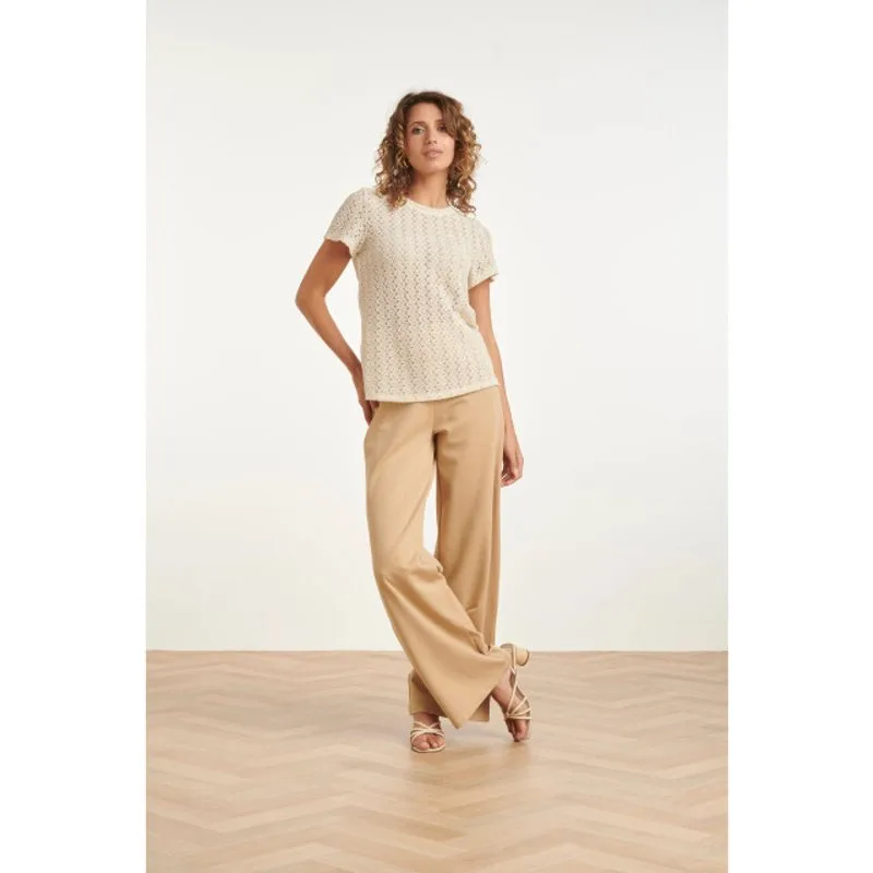 Comfort en stijl komen samen in deze veelzijdige pantalon van Smashed Lemon. Deze broek is de ideale basis voor elke garderobe dankzij het tijdloze, minimalistische ontwerp. De pantalon heeft een moderne 'wide leg' pasvorm, waardoor de pijpen soepel en recht naar beneden vallen. De elastische tailleband zorgt ervoor dat de broek de hele dag door comfortabel zit, zonder in te leveren op een geklede look. Smashed Lemon bewijst hiermee dat een zakelijke of casual outfit ook heerlijk kan zitten. Combineer de pantalon met een mooie top of blouse voor een complete en modieuze set. Belangrijkste kenmerken : Modieus wide-leg model voor een eigentijdse look. Hoog draagcomfort door de elastische tailleband. Perfect te combineren met zowel casual als zakelijke items van Smashed Lemon.Specificaties : * Stijl: Broeken * Print: Uni * Pasvorm: Losvallend * Lengte: Lang * Model is: 174cm tall and wears size S/36 * Country of origin:: Made in P.R.C. * Verkrijgbaar in kleuren: Beige *