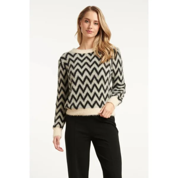 Smashed Lemon Zwart, grijs en offwhite gebreide top met zigzagprint | Prijzen