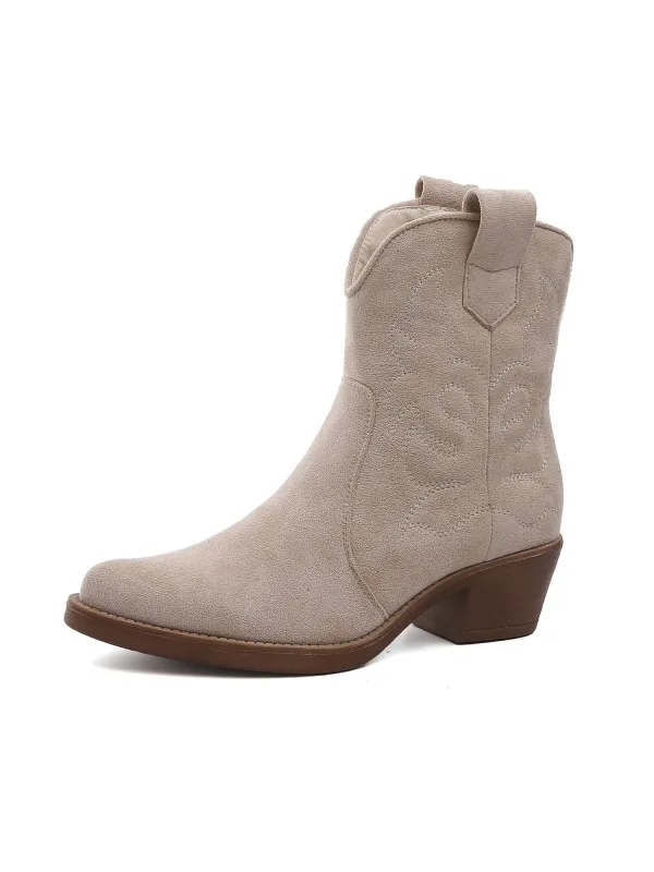 Smile Favorites Dames Cowboylaarzen Kort - Beige - Suedine -...