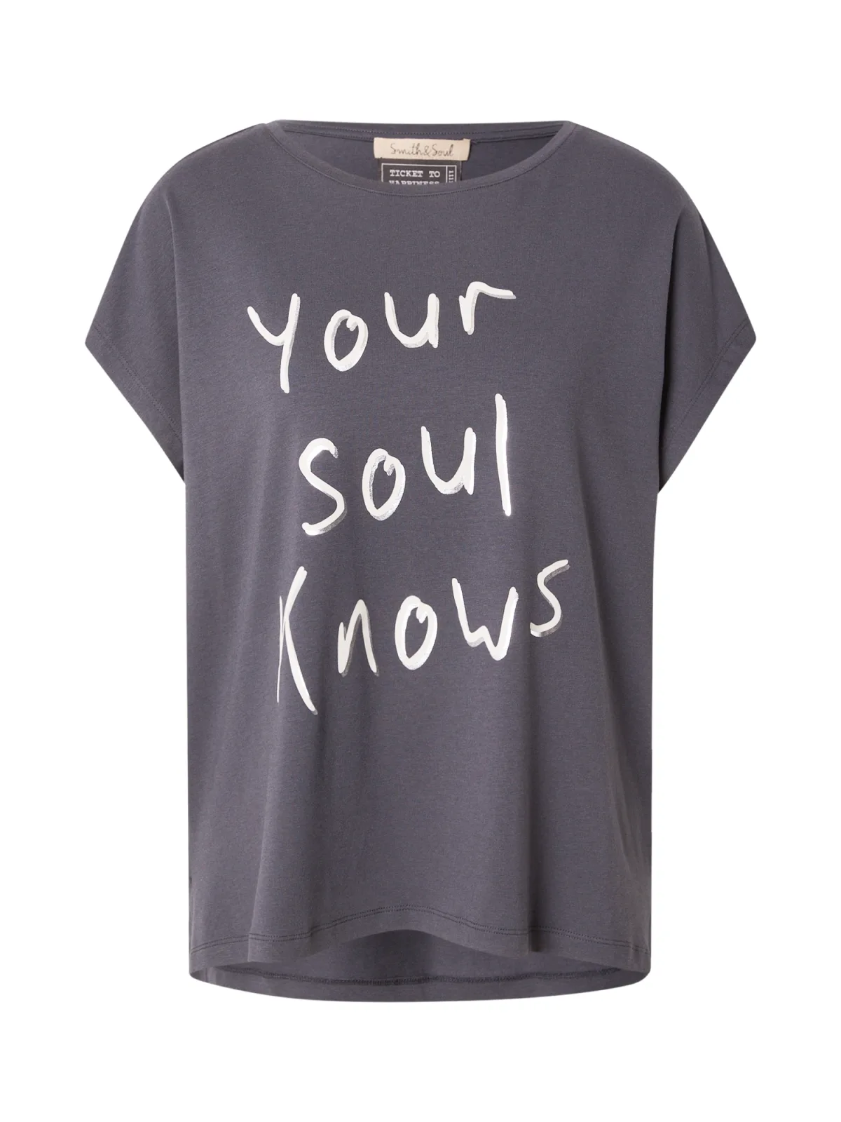 Design: Gevoerde zoom/rand, Gesneden mouw, Verlengd rugpand, Nektape; Materiaal: Jersey; Halstype: Boothals; Motief: Tekst print; Extra's: Op staal naden, Voelt zacht aan; Pasvorm: Losse pasvorm; Armlengte: Kwartmouw; Lengte: Normale lengte
