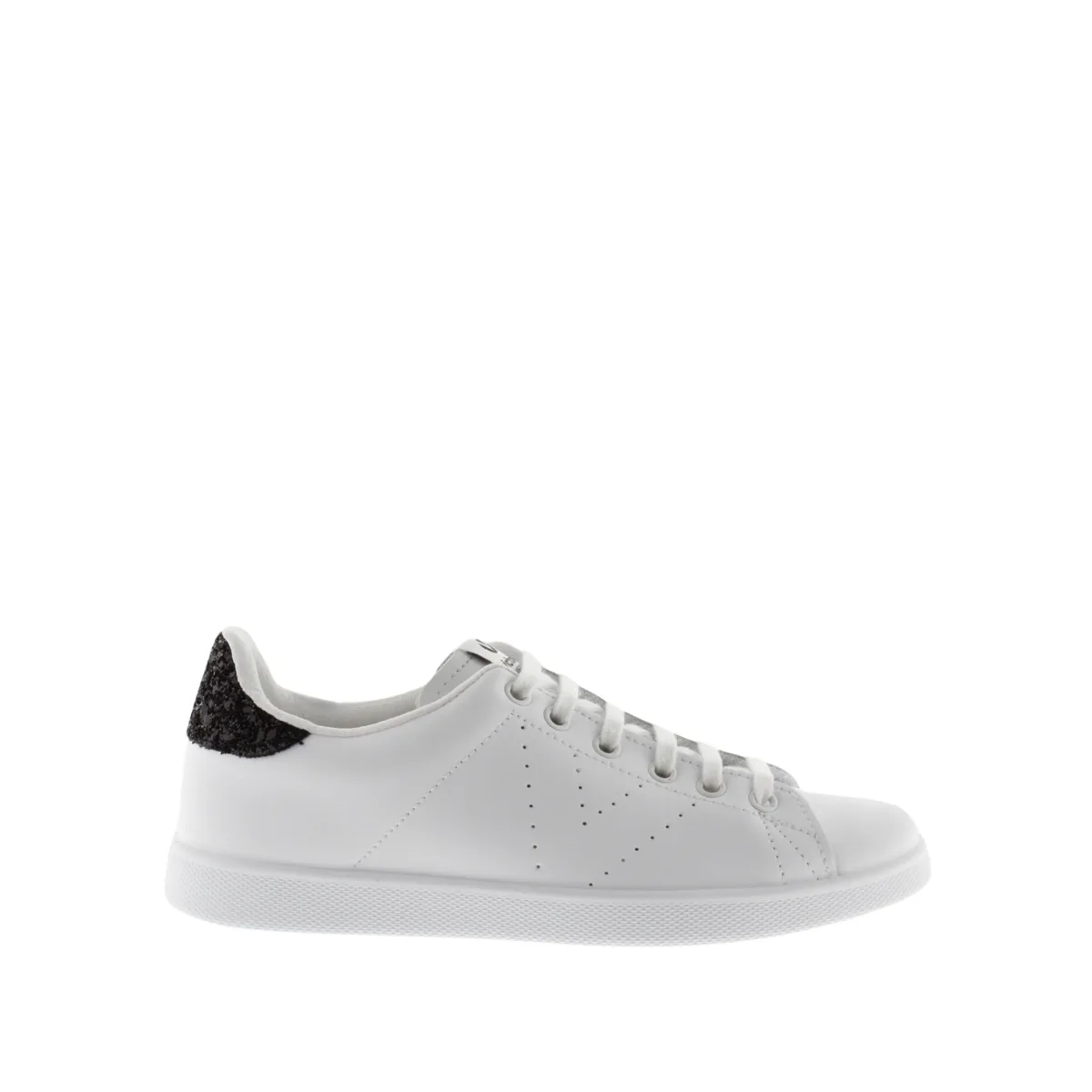 Mandje VictoriaVersie: LaagSluiting: vetersZwart en glanzende strassteentjes op de rugBovenstuk : SynthetischVoering: TextielBinnenzool: CanvasBuitenzool: SynthetischEtiket Victoria op de tong genaaidSamenstelling:Synthetisch