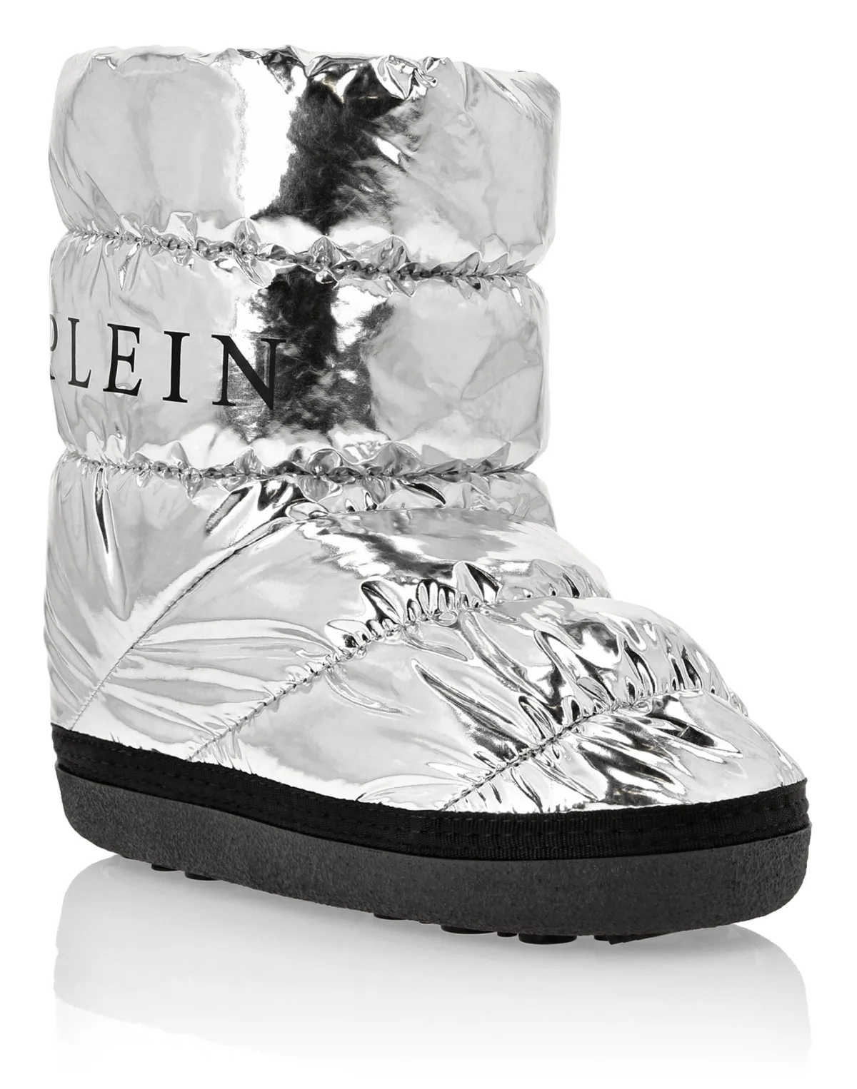 Deze Platte Hoge Laarzen brengen een futuristisch statement in de winterstyling, waarbij gedurfd design wordt gecombineerd met gezellig comfort. Perfect voor het toevoegen van een opvallende rand aan koud weer outfits. gewatteerd bovenwerk zorgt voor warmte en een opvallend volume-effect Bold metallic afwerking zorgt voor opvallende aantrekkingskracht Logo detail verbetert de handtekening identiteit gedempt interieur biedt comfort voor de hele dag dragen duurzame buitenzool ontworpen voor stabiliteit en grip in winterse omstandigheden