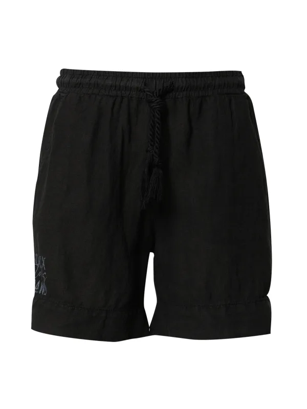 Design: Taille met trekkoord, Elastische taille/zoom, Om te knopen/binden, Paspelzak, Zakken aan de zijkant; Materiaal: Linnen; Motief: Effen; Details: Gedrapeerd; Extra's: Applicaties, Label print; Lengte: Kort/mini; Pasvorm: Regular; Taillehoogte: Mid waist