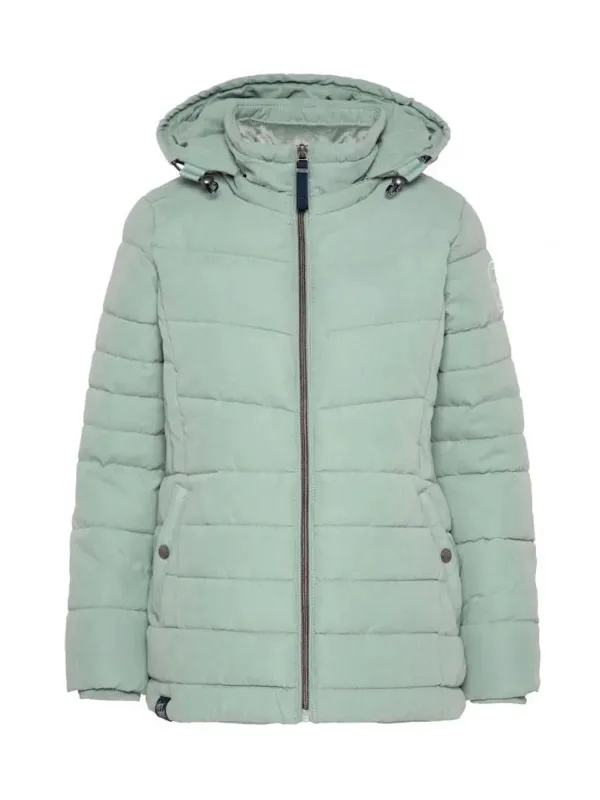 Deze gewatteerde jas voor dames is de ideale metgezel voor de winter. Hij is warm gevoerd en kan op verschillende manieren worden gecombineerd. De comfortabele snit creëert een vrouwelijk silhouet en is zeer comfortabel om te dragen. De pluizige teddyvoering in de opstaande kraag en in het bovenste deel van de romp zorgt voor een behaaglijk gevoel. De jas kan worden gesloten met een rits. De capuchon kan met een trekkoord worden versteld of indien nodig worden verwijderd. Een opstaande kraag biedt extra bescherming tegen kou en wind. De mouwen zijn afgewerkt met geribde boorden om te voorkomen dat de kou binnendringt. De twee zijzakken met drukknopen zijn ideaal om kleine spullen in op te bergen of je handen warm te houden. Labelopdrukken op de capuchon en mouwen ronden het ontwerp af. Een stijlvolle winterlook is gegarandeerd met deze jas.