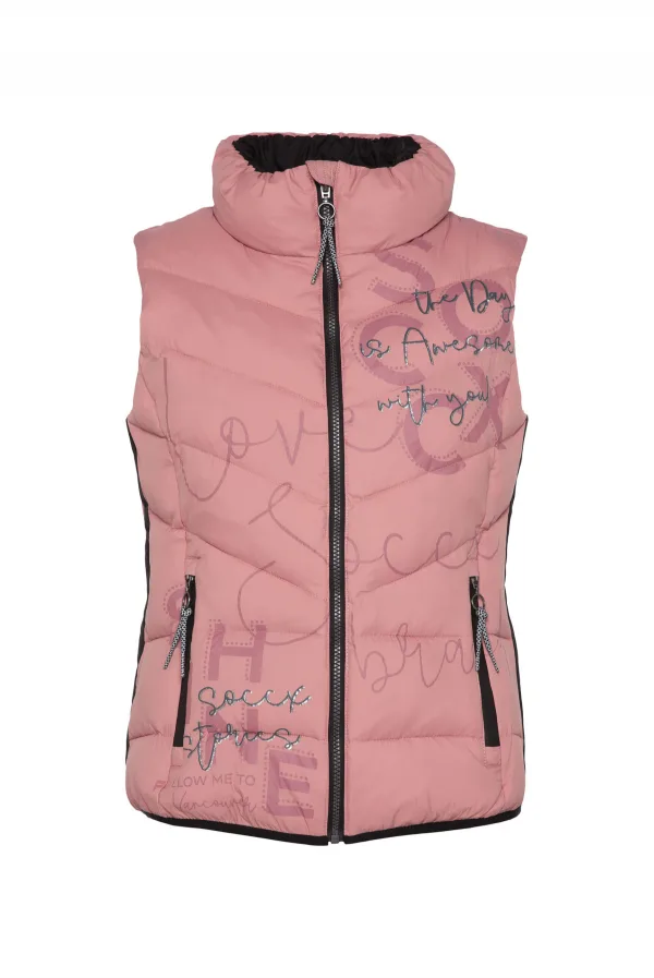 Een decoratieve logoprint siert de voorkant van het gewatteerde vest van SOCCX voor dames. Ook staat er een kleine print op de bovenrug. Het vest voelt heerlijk licht aan, heeft contrasterende strepen aan de zijkanten en een elastische boord. Ook is het voorzien van praktische zakken met rits. Zeer aangenaam om te dragen, comfortabel en sportief gesneden tegelijk. Kan met veel kledingstukken worden gecombineerd.