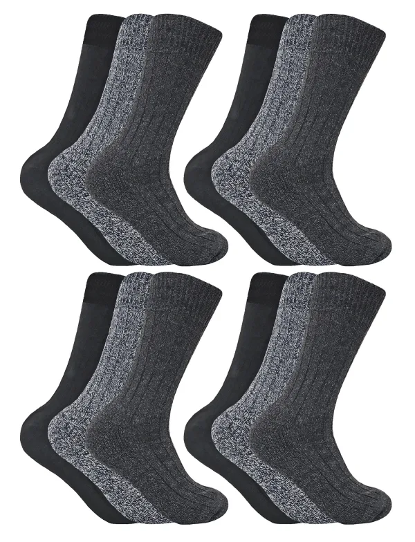 12 Paar Heren Wolmix Buiten SokkenAls je graag de natuur in gaat, is het essentieel om warm en comfortabel te blijven en bovendien genoeg paren te hebben om lang mee te gaan. Deze 12-pack Heren Wolmix Wandelsokken zijn speciaal voor dat doel ontworpen!Met een geweldige waarde van 12 paar, zijn deze wollen sokken gegarandeerd om je voeten extra warm te houden. Wol is een natuurlijke isolator, waardoor ze zijn ontworpen om de warmte die uit je lichaam komt vast te houden en je extra warm te houden.Ongeacht het niveau van de wandeling dat je maakt, moet je weten dat je comfortabel blijft, daarom hebben deze ook een terrykussentje met extra padding in de zool voor extra comfort en steun; dit is zeer nuttig bij het lopen op ruw terrein. Deze sokken hebben ook een unieke stay-up bovenkant om ervoor te zorgen dat ze niet gemakkelijk afzakken, wat ideaal is tijdens het trekken. In tegenstelling tot de meeste wollen sokken, zijn deze sokken ontworpen om je voeten te laten ademen.Uns Sock Snob Wolmix Sokken zijn verkrijgbaar in 4 verschillende kleuren, waaronder Bruin, Blauw, Zwart en Grijs, en zijn verkrijgbaar in One Size voor mannen: 6-11 UK, 7-12 US, 37-42 EUR. Ze zijn gemaakt van: 35% Acryl, 35% Polyester, 20% Wolf, 10% Gemengde Vezels en zijn machinewasbaar.Extra productdetailsWolmix Sokken12 Paar waarde pakketNatuurlijke thermische eigenschappenGeschikt voor wandelen en tochtenDik en comfortabelTerry gekussende zoolUnieke stay-up bovenkant4 kleur optiesMannen: 6-11 UKMachinewasbaar